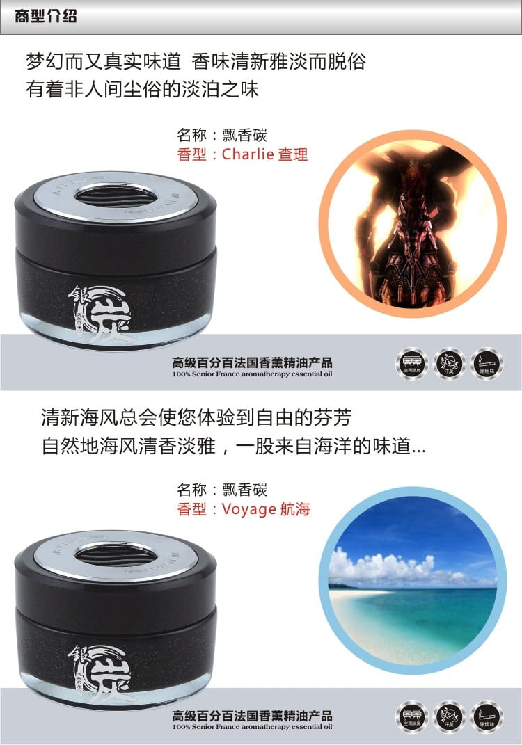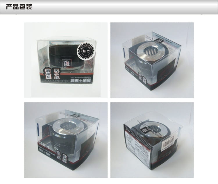 產品特點:吸墨碳座-汽車香水座造型時尚,高檔大方。制作精美、香味持久,還能凈化空氣,吸附二手煙,殺滅細菌,清除異味。對人體有舒緩壓力,提神醒目等功效,持續散香可達3個月。